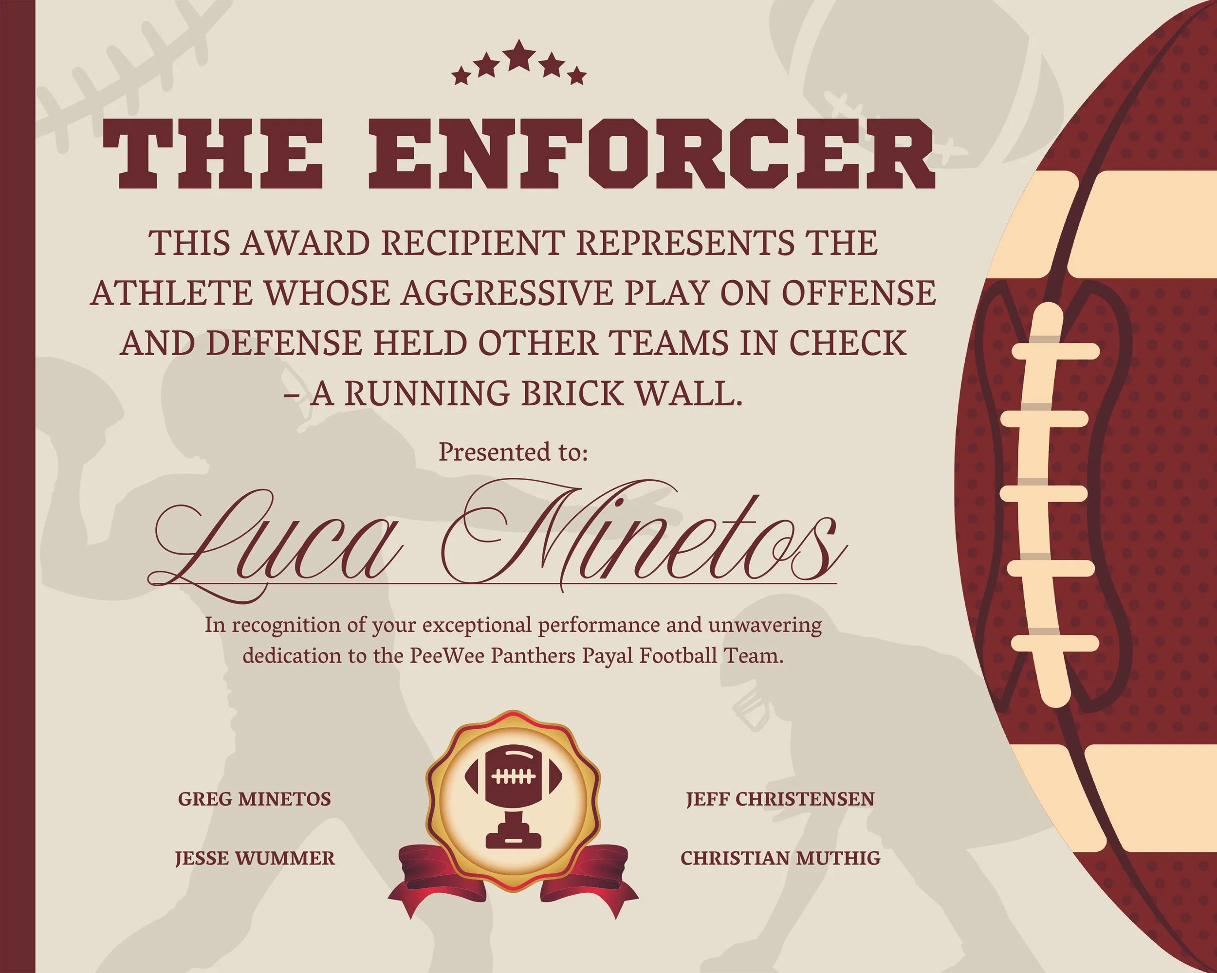 Football Banquet Award